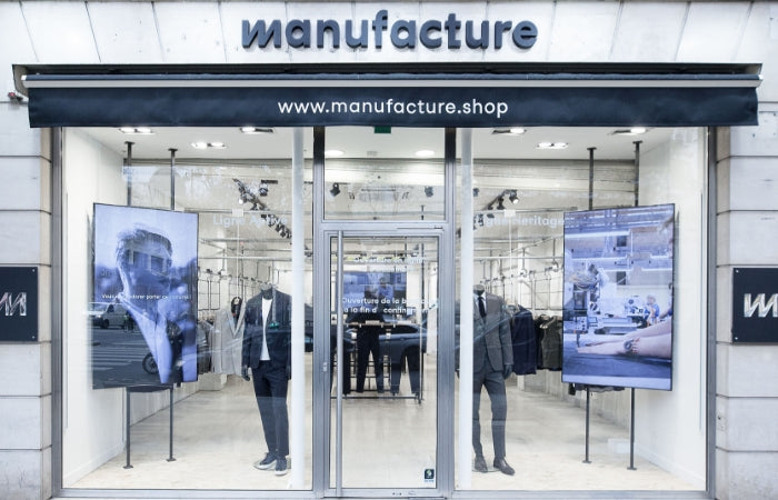 Des écrans connéctés pour vous faire paratger nos valeurs, des fiches produits explicatives, des certificats d' eco-responsabilité, des tablettes pour la prise de mesure, tout est fait pour vous faire vivre une nouvelle experience.