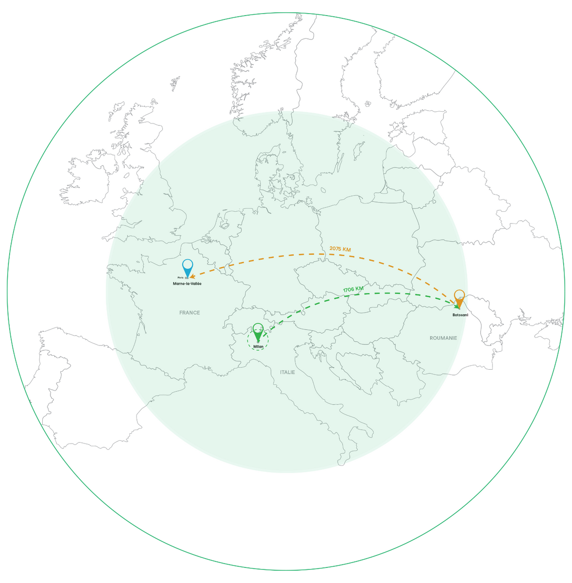 Aujourd’hui, la majorité des costumes sur-mesure vendus en Europe est fabriquée en Chine et est transportée par voie aérienne. Grâce à notre proximité avec nos fournisseurs et nos clients, nous préférons utiliser le transport routier, moins polluant que l’avion.