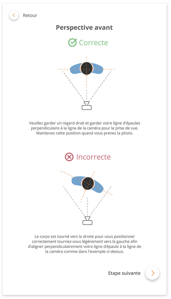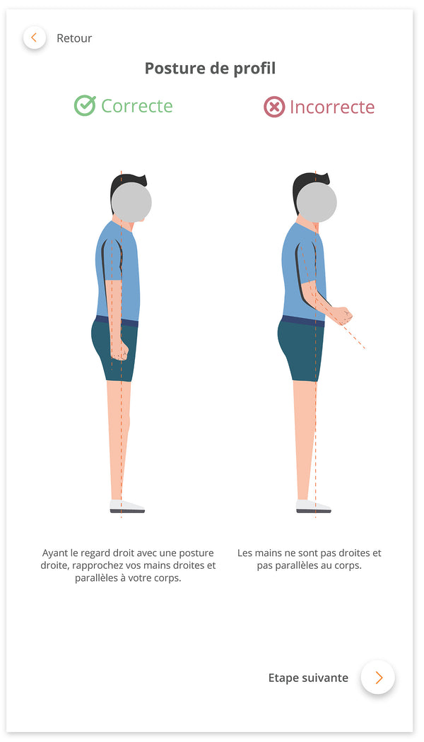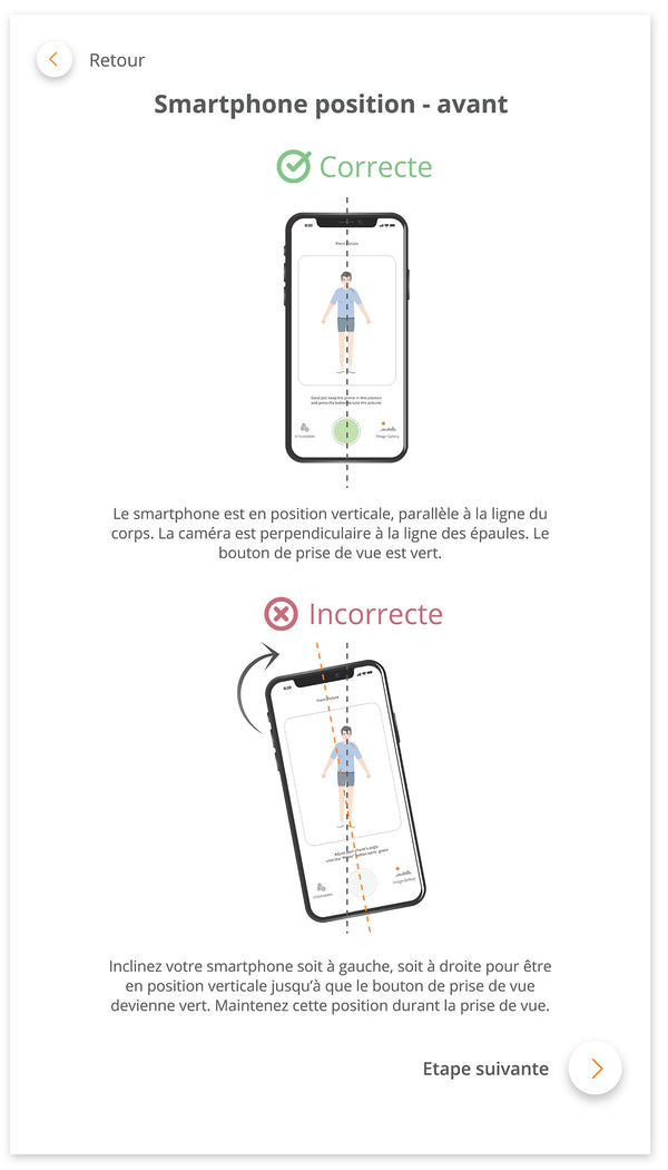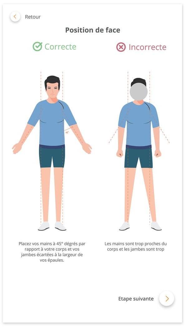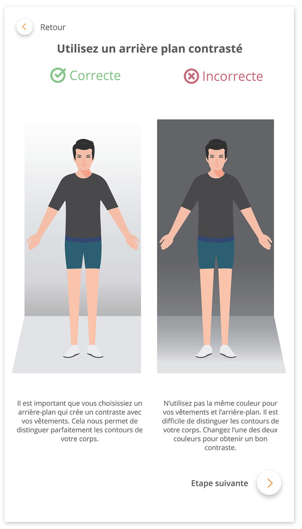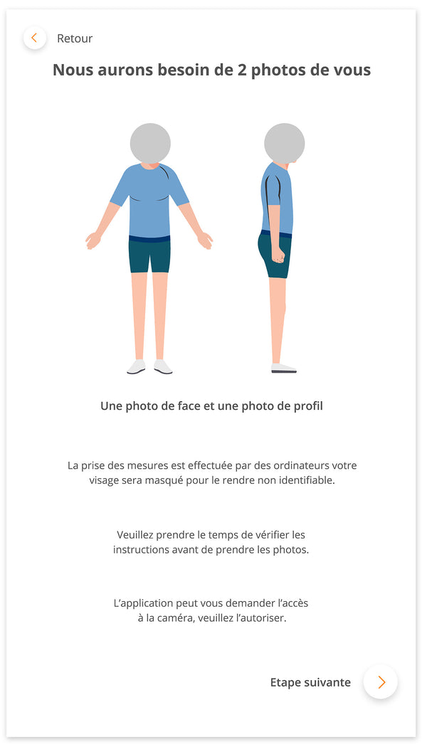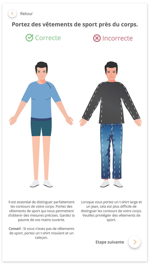En introduisant votre taille et votre poids, le système de prise de mesure FitAp permet de connaître votre morphologie en seulement deux photos: une de face et une de profil.